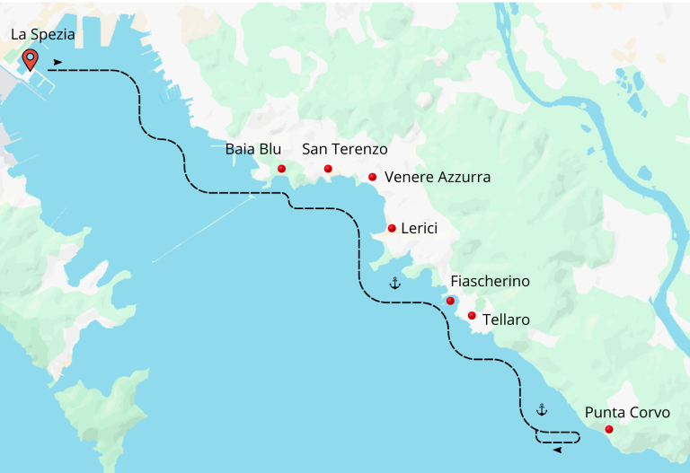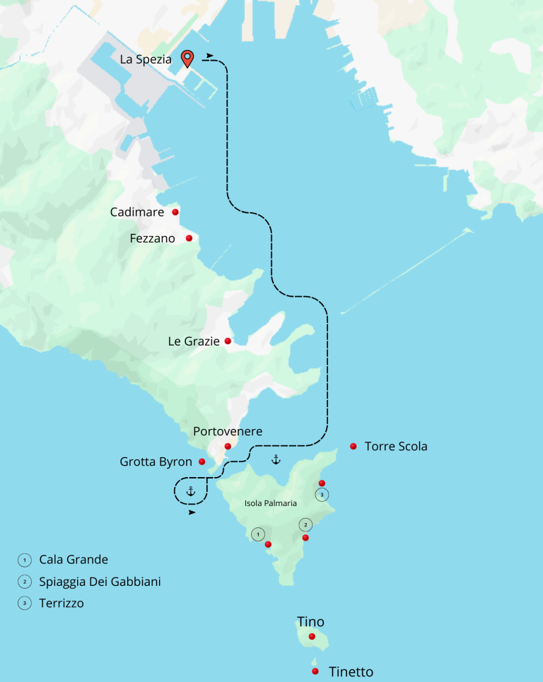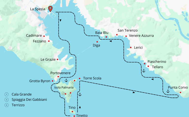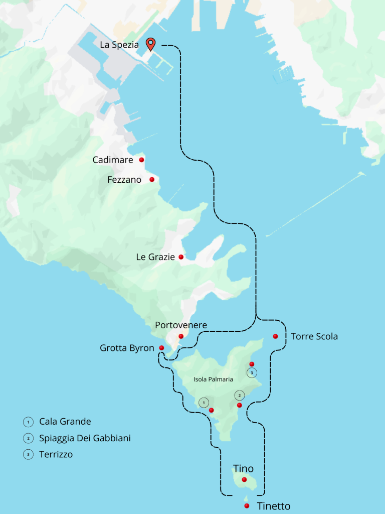 📍Portovenere - Grotta Byron - Isola Palmaria - Isola del Tino - Tinetto - Punta corvo - Tellaro - Fiascherino - Lerici - Baia Blu